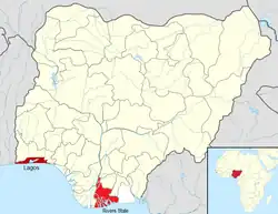 The index case in Nigeria was a Liberian-American, Patrick Sawyer, who flew from Liberia to Nigeria's most populous city of Lagos on 20 July 2014.[9] Sawyer became violently ill upon arriving at the airport and died five days later.[10] In response, the Nigerian government observed all of Sawyer's contacts for signs of infection and increased surveillance at all entry points to the country.[11][12][13]