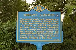 ![]() The monument sign for Ebright Azimuth, the highest point in Delaware as of September 2016 | |
