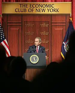 President George W. Bush delivers remarks to the Economic Club of New York in March 2008