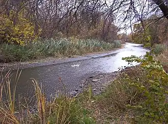 The Ecorse River is an 18.8-mile-long (30.3 km)[2] river in southern Michigan. Because of its small size, it is often identified as Ecorse Creek. It flows through the Downriver section of Metro Detroit, and is a tributary of the Detroit River. The early French settlers named it the Rivière aux Écorces ("bark river").[3] They named the river after the custom they observed of the local Native American tribe, who wrapped their dead in birch or elm bark, and buried them at the mouth of the river. The river has two branches, which meet at Council Point Park in the city of Lincoln Park, where chief Pontiac held a council in 1763 before attacking Fort Detroit.