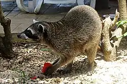 Crab-eating raccoon wandering on a beach resort from the nearby Las Baulas National Marine Park.