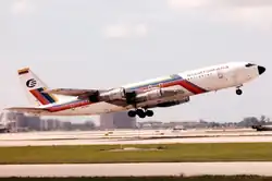 In the 1970s, most South American national airlines were operated by national air forces. Through the Defence Ministry, the Ecuadorian Air Force bought two refurbished Boeing 707s for the airline from Israeli Aircraft Industries in a deal worth US$4,700,000 (equivalent to $29,966,464 in 2024) million.[6] Ecuatoriana also acquired a Douglas DC-10 from Swissair and opened non-stop routes to Canada. Having jet equipment meant that long flights with stopovers were no longer necessary, and non-stop routes were opened all over South America and to other North American cities.