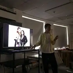 Fornieles was first recognized for his performance pieces such as Animal House (2011)[8] at the experimental space, Guest Projects in London. Animal House helped refine a method that Fornieles would repeat in his subsequent works, engaging participants and viewers in sometimes awkward situations.[9] Dorm Daze, grew out of Fornieles' interest in American fraternity culture as a large-scale on-line performance played-out on Facebook, where participants adopted profiles taken from real life American college students.[5] Fornieles work focuses on the effect of narratives, habits, and technology in the formation of social roles and personal identity. He uses performance to re-enact and distort relationships to archetypes and conventions. Each chapter of work is driven by an intense period of research centered on reinterpreting and remodeling the subject under investigation. The Dreamy Awards (2012),[10] was a fictional ceremony initiated to raise questions about the cult of the awards bash. The work was presented at the Serpentine Galleries Park Nights with the participation of over 200 people, including actor Zac Efron, in a pre-recorded video clip. Other works include, New York New York Happy Happy (NY NY HP HP) (2013) where Fornieles was invited by Rhizome to organize a gala at the New Museum.[11] The event was controversial because Fornieles scripted both actual Museum donors and actors, blurring any sense of reality. Modern Family (2014) was a sullen installation where Fornieles explored the breakdown of the family both metaphorically and literally.[12]