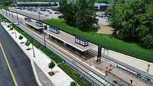 Eden Prairie Town Center station is one of four light rail stations planned in Eden Prairie, Minnesota on the Southwest LRT extension of the Green Line.[1] In 2015, the station was deferred as a part of budget cuts in the planning process for the Southwest LRT. However in 2017, the city of Eden Prairie agreed to pay for the engineering design work for the station.[2] The city of Eden Prairie officially received federal grant funding which enabled the station to be in the final construction plan for the Southwest LRT.[3] The station will be located near the Eden Prairie Center shopping center and south of the intersection of I-494 and U.S. Route 212.