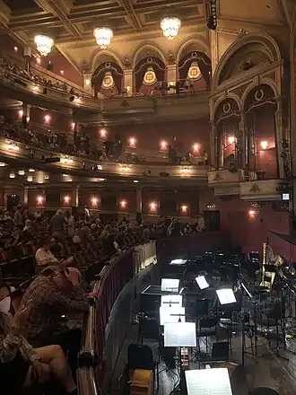 Nevertheless, given the long term competition from the growth of film as a popular medium, the theatre had to be re-equipped to present bigger and more spectacular shows. Reusing some of Matcham's original design concepts, the theatre reopened on 1 October 1928 with the first production, the musical Show Boat. Between 1928 and 1963 the Empire was a variety, musical and opera house, often including ice shows.
