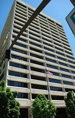 The Edith Green – Wendell Wyatt Federal Building is a high rise structure in downtown Portland, Oregon, United States. Opened in 1975, the 18 story-tower is owned by the federal government. The international style office building has more than 370,000 square feet (34,000 m2) of space. Designed by the Skidmore, Owings and Merrill architecture firm, the building is named after Wendell Wyatt and Edith Green who both served in the United States House of Representatives.