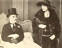 Edna Purviance was so closely associated with Chaplin on screen that trade reviewers took exception when she was away. Columnist Julian Johnson, reporting on Chaplin's solo performance in One A.M., wrote: "Congratulations, Mr. Chaplin, on speaking your piece so nicely, but—come on back, Edna!"[25] The noticeably close relationship extended to the actors' private lives: Chaplin and Purviance were romantically involved during the making of his Essanay, Mutual, and First National films of 1915 to 1917.[26] The romance ended suddenly when Purviance read a newspaper report of Chaplin having married 16-year-old Mildred Harris.