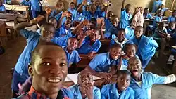 Two separate systems of education were used in Cameroon after independence: East Cameroon's system was based on the French model, West Cameroon's on the British model. Uniting the two systems was deemed a symbol of national integration between West and East Cameroon.[4] The two systems were merged by 1976, but studies suggest that they did not blend well.[5] Shortly after independence, French was considered the main language of the country, but with the rise of English as a lingua franca, the balance switched to the latter.[6] Christian mission schools have been an important part of the education system, but most children cannot afford them and are forced to choose state-run schools.[7] Education became compulsory up to the age of 12 years, when 6 years of primary schooling are complete. Education is free, but parents have to pay for uniforms, books, and sometimes even anti-malaria prophylaxis for pupils. Tertiary-level students received money monthly back in the days of President Amadou Ahidjo and for the first few years of President Paul Biya. Tuition fees at the secondary school level are high and unaffordable for many families.[8] The country has institutions for teacher training and technical education. There is, however, a growing trend for the wealthiest and best-educated students to leave the country to study and live abroad.