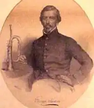 Edward "Ned" Kendall (March 1, 1808 in Fort Wolcott, Goat Island, Rhode Island – October 26, 1861 in Boston) was a bandleader and musician who played the keyed bugle.[1][2][3] He was known for his Boston Brass Band, itself a pioneer in all-brass bands, and for a trumpet-playing showdown with the former leader of the Boston Brigade Band, Patrick Gilmore.[1][2][3] He was also known for his silver bugle, a gift from Queen Victoria.[3]