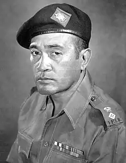 Cakobau returned to Fiji and worked as a schoolteacher. He later became a civil servant, starting as a clerk in the Native Affairs Department and rising to become Deputy Secretary for Fijian Affairs.[1] He was one of Fiji's representatives at the coronation of George VI in 1937.[4] During World War II he served in the Solomon Islands, for which he was awarded the Military Cross.[1] In 1944 he was appointed to the Legislative Council as one of the five nominated Fijian members.[5] He later returned to military service during the Malayan Emergency, serving in Malaya in 1953 and 1954, during which he became commanding officer of the Fiji Battalion.[1] He was awarded the OBE for his service in Malaya,[1] and was given a CBE in the 1966 Birthday Honours.