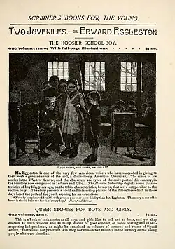 Edward Eggleston's literary reputation was firmly established with the publican of The Hoosier Schoolmaster in 1871.[17] Based mostly on his experiences in rural Indiana, the novel portrays the challenges faced by a schoolteacher in a frontier community. Eggleston's use of local dialect and his societal observations create a vivid description of backwoods life, contrasting the rough environment with the teacher's efforts to bring order to the school. The novel was one of the first to authentically portray the rural Midwest and became a foundation work of regional realism.