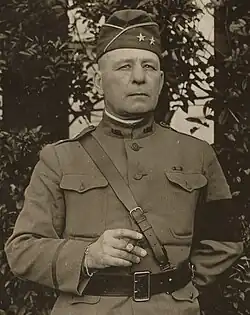 After the war, McGlachlin reverted to the permanent rank of colonel; he was promoted to brigadier general in 1921, and major general in 1922.[15] His assignments included command of the 7th Division at Camp Funston, Kansas, and later Camp Meade, Maryland.[15] In 1921 he was assigned as commandant of the Army War College, where he remained until retiring in 1923.[1][16] During this period his aide-de-camp was Floyd Lavinius Parks, who would later become a lieutenant general after World War II.
