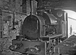 The Corris Railway was a 2 ft 3 in (686 mm) gauge tramway built in 1859, which ran from Machynlleth north to Corris and on to Aberllefenni to serve local slate quarries. The railway company owned three locomotives, built in 1878; by the end of World War I all three were in poor condition, and the railway ordered a fourth, a modified version of Kerr Stuart's 0-4-2ST "Tattoo" class, in 1921.[2] It initially struggled with the workload on the Corris and was provided with a new boiler with a greater number of tubes in 1928.