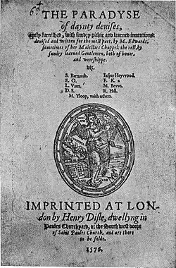 178. ^ Marotti 1995, p. 126, quoting L. Glenn Black's unpublished Studies in Some Related Manuscript Poetic Miscellanies of the 1580s 2 vols. D. Phil. thesis, Oxford, 1970, v. 1, p. 30.