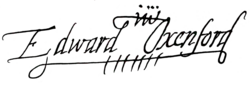Edward de Vere, 17th Earl of Oxford (/də ˈvɪər/; 12 April 1550 – 24 June 1604), was an English peer and courtier of the Elizabethan era. Oxford was heir to the second oldest earldom in the kingdom, a court favourite for a time, a sought-after patron of the arts, and noted by his contemporaries as a lyric poet and court playwright, but his volatile temperament precluded him from attaining any courtly or governmental responsibility and contributed to the dissipation of his estate.[1]