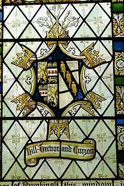 Arms of 1st Baron Trevor impaling Curzon. St.Mary's Church, Chirk, Wales