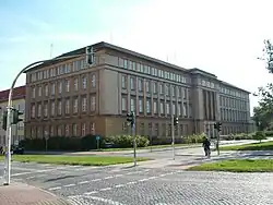 The first design for the new residential quarter was developed by the modernist and Bauhaus architect, Franz Ehrlich, in August 1950. His modernist plan, which laid out a dispersed town landscape along functional lines, was rejected by the Ministry for Reconstruction. The same happened to the plan presented by the architects Kurt Junghanns and Otto Geiler. The plan that was ultimately realized was developed by Kurt Walter Leucht.[14][15]
