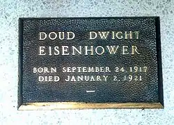 Doud Dwight Eisenhower (September 24, 1917 – January 2, 1921) was the first son of Dwight and Mamie Eisenhower. He was named "Doud" in honor of his mother (whose maiden name was Doud) and "Dwight" in honor of his father. He was commonly called "Ikky" (pronounced as "icky") by his parents.[18][19]