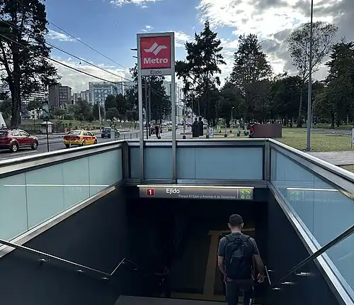 El Ejido is a Quito Metro station. It was officially opened on 21 December 2022 as part of the inaugural section of the system between Quitumbe and El Labrador. The revenue service started on 2 May 2023 and stopped on 11 May 2023.[1] It resumed on 1 December 2023.[2] The station is located between Universidad Central and La Alameda.[1]