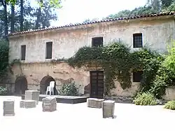 It was the first water-powered grist mill in Southern California,[15] and some have called it the first grist mill in California.[11] While some have called Father Zalvidea's horizontal design a "mechanical marvel, evolved and constructed by a mastermind," others considered the design flawed as it splashed moisture up the shaft, leaving the flour damp.[13][16] The mill was operational for only seven years, during which time it provided food for the missionaries and Indian neophytes, there were 1,644 Tongva-Gabrieleños in 1816[7] (Population of Native California) in the mission community.[11] In 1823, a New England–style mill with a vertical waterwheel was built adjacent to the mission.[7] The new mill resulted in a superior product, and the old mill ceased operation.[15]