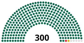 The Parliament of Bangladesh (Jatiya Sangsad) consists of 350 members elected to five-year terms. Of that number, 300 are elected in single-member territorial constituencies according to the first-past-the-post electoral system. The remaining 50 seats are reserved for women, and are filled on the basis of proportional representation by a vote of the 300 members. The number of reserved seats has been revised over the years, increasing from 30 to 45 under the 8th parliament and 45 to 50 under the 9th parliament.[1]