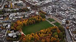 View of the main block of the palace from the Hofgarten, Bonn Minster can be seen in the background