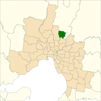 Location of Mill Park (dark green) in Greater Melbourne