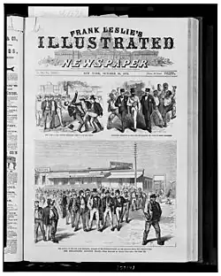 Electoral fraud was prevalent in the United States during the 19th century, when safeguards against fraud and electioneering were considerably weaker, and political machines wielded significantly more power. Political parties would produce their own ballots, and as of the mid-19th century, seven states still conducted elections by voice voting. States only began to adopt the secret ballot in the 1880s and 1890s.[9] Voter fraud was so common that it developed its own vocabulary. "Colonizers" were groups of bought voters who moved en masse between wards. "Floaters" cast ballots for multiple parties, and "repeaters" voted multiple times, sometimes in disguise.[215][216] Cooping was a form of fraud where people were kidnapped, drugged and forced to repeatedly vote, and is thought to have contributed to the 1849 death of Edgar Allan Poe.[217][218]
