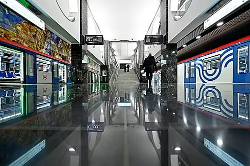 Elektrozavodskaya (Russian: Электрозаводская) is a station on the Bolshaya Koltsevaya line of the Moscow Metro. The station was opened on 31 December 2020 as a one-station extension from Lefortovo and provisionally functions as part of Nekrasovskaya line.[2] The station serves as a transfer point to the Arbatsko-Pokrovskaya line since 30 December 2024.