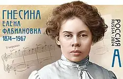 Elena Fabianovna Gnesina listen (sometimes transcribed Gnessina) (Russian Елена Фабиановна Гнесина) (30 May 1874 – 4 June 1967) was a Soviet and Russian composer and music educator, a sister of the composer Mikhail Gnesin.