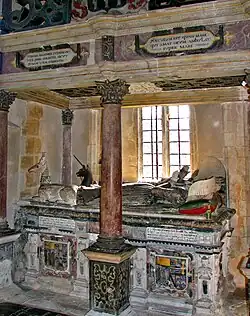 On the death of Elizabeth Kitson in 1628 the music collections and the house were inherited by her daughter Mary Kitson,[2] who married Thomas Darcy, 1st Earl Rivers. Elizabeth had requested that her funeral should be free of pomp and should be either very early or late in the day. She was buried at Hengrave church and her statue was added to that of her husband and his first wife in a large memorial that she had commissioned in 1608.[2]