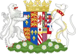 Dexter, a lion argent. Sinister, a greyhound argent collared gules.[45]