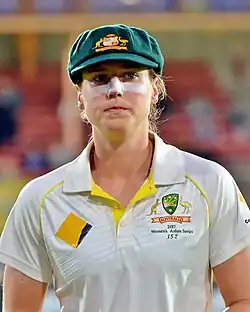 Ellyse Alexandra Perry (born 3 November 1990) is an Australian cricketer and former soccer player. Having debuted for both the national cricket and national soccer team at the age of 16, she is the youngest Australian to play international cricket and the first to appear in both ICC and FIFA World Cups.[3] Gradually becoming a single-sport professional athlete from 2014 onward,[4] Perry's acclaimed cricket career has continued to flourish and she is widely regarded to be one of the greatest female cricketers of all time.[5]