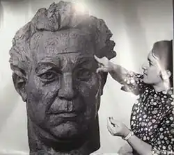 Hüseynova is most noted for her massive sculpture works on monuments and her originality of composition. Some of her most noted pieces include The Farm Collective Girl (1957), Worker (1958), Family (1960), and Mother (1970). She created sculptures for the tombs of Jafar Jabbarly (1968) and Rasul Rza (1970), as well as a bas-relief of Lev Landau[3] and a monument to Hasan bey Zardabi (1983), which stands in Icheri Sheher at the entrance to the publishing house of the Azerbaijan Encyclopedia.[3][6] She created two monuments in Germany and in 1967 was recognized as an Honored Artist of Azerbaijan.[3] Other noted works include a statue of Dmitri Mendeleev on the loggia of the National Library of Azerbaijan in Baku, a monument to Jafar Jabbar in Sumgayit (1966) and a painting on canvas in the Milli Mejlis building featuring a portrait of Nizami Ganjavi.[6][1] In addition to her sculpture, she was known for portraiture, with her most-known pieces being: Portrait of Sattar Bahlulzade, Portrait of Rasul Rza, Portrait of a student, and Portrait of Tughril.[6]