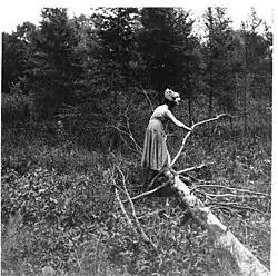 Miss Butler crossing the swamp in Glenwood Park (1911)
