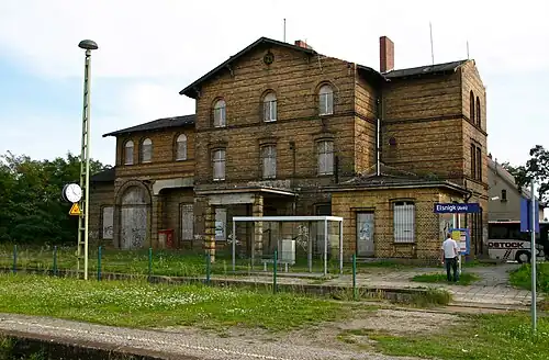 Elsnigk (Anh) station is a railway station in the municipality of Elsnigk, located in the Anhalt-Bitterfeld district in Saxony-Anhalt, Germany.