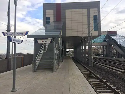 Elvankent railway station (Turkish: Elvankent tren istasyonu) is a railway station in Ankara, Turkey. The station was a stop on the Ankara suburban from 1972 to 2016 when it was closed and demolished shortly after, in order to rebuild and expand the railway. Construction of the new station began in 2017 and opened on 12 April 2018.[1]