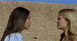 Once there, she befriends Debra, the daughter of US Consul David, and tells them what has happened to her. Then she visits Roberto in the excavation camp and meets, to her surprise, Roberto's fiancé: his English colleague Janett. That does not stop her from joining them in their tent. The next morning, the three go on a tour of the desert, where their car breaks down and they meet a horde of mounted Tuareg nomads. The two women decide to ride with them rather than wait and leave Roberto alone. In the nomad camp, they dance for, and have sex with, the nomads.