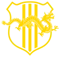 Variant coat of arms of South Vietnam. | 1967 – 30 April 1975 | The pale and pallets of the South Vietnamese flag (Cờ vàng ba sọc đỏ), arranged vertically in an escutcheon supported by two dragons or. Influences: |