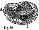 - Figure 36. Embryo of Ligia in the egg, magnified 15 diam. B. yelk; L. liver.