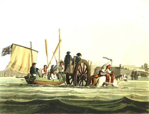 Buenos Aires, c.1820. Despite the port's importance, passengers — here, a British admiral and his secretary — were landed by horse and cart and risked a soaking. "The documentary value of these sketches... cannot be overestimated".