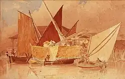 British naval painters of the time were stunned by their first sight of Rio de Janeiro, its tropical light, its exotic flora and its scenery.[47] Until 1930 collectors supposed all but three of Vidal's Brazilian paintings had been lost. It then emerged that his great-granddaughter had a collection of 25 including many Brazilian watercolours. On this visit Vidal painted landscapes — "they give us exact details of that fantastic vegetation, and architectural representations of great value, [but] the human figure appears as merely accessory".[48]