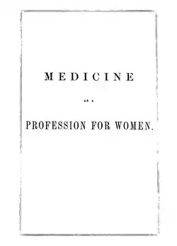 During the American Civil War, Blackwell helped organize the Women's Central Association of Relief, which selected and trained nurses for service in the war. The WCAR had trained close to 4000 American women in order to distribute life-saving supplies across the United States. Between the years 1861 to 1863, the group had distributed over 470,000 articles of clothing and close to 300,000 bedding items. Emily and Elizabeth Blackwell and Mary Livermore also played an important role in the development of the United States Sanitary Commission.[9] After the war, in 1868 the Blackwell sisters established the Women's Medical College in New York City. For 30 years Emily served as a professor for over 300 women in studies of obstetrics and gynecology before co-ed medical schools were a common practice, and in 1869, when Elizabeth moved to London to help form the London School of Medicine for Women, became dean of the college. In 1876 it became a three-year institution, and in 1893 it became a four-year college, ahead of much of the profession. By 1899 the college had trained 364 women doctors. Among those on staff at the college during this time was Mary Putnam Jacobi, who taught materia medica and therapeutics.[10]