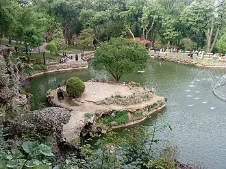 Inside the park with two decorative ponds are plants of more than 120 species. The most notable rare trees in the park are Stone Pine, Turkish pine, Aleppo Pine, Blue Pine, Eastern White Pine, Maritime Pine, Japanese Cedar, Norway Spruce, Blue Spruce, Atlas Cedar, Lebanon Cedar, Himalayan cedar, Beech, Ash tree, Sapindus, Babylon Willow, Hungarian Oak, Colorado White Fir, Maidenhair tree, California incense-cedar, Coast Redwood and Camphor tree.[7]