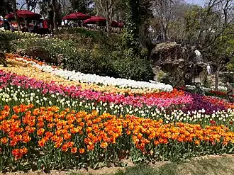 Emirgan Park is closely associated with the tulip, the traditional flower, which gave its name to an era (1718-1730) of the Ottoman Empire. A special garden was established in Emirgan Park in the 1960s to revive the city's tradition of tulip cultivation. Since 2005, an annual international tulip festival is organized there every April making the park attractive and very colorful.[1][3]