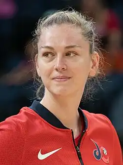 Emma Meesseman (born 13 May 1993) is a Belgian professional basketball player for New York Liberty of the Women’s National Basketball Association. After playing basketball in Belgium, Meesseman was drafted by the Washington Mystics with the 19th overall pick in the second round of the 2013 WNBA draft. She has also played for the Belgian national team and several European professional teams. She was named the 2011 FIBA Europe Young Women's Player of the Year and the 2019 WNBA Finals MVP.[12] Meesseman studied physical education at Vrije Universiteit Brussel.[13][14]