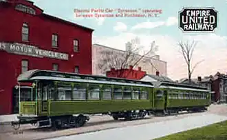 The Empire United Railways was an interurban railway that was owned by Clifford D. Beebe of Syracuse, New York. The Beebe Syndicate controlled interurbans that ran from Rochester to Syracuse, to Auburn to Oswego on Lake Ontario.[1]