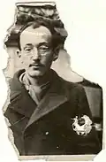 Endre Bíró in Bucharest in January 1945 in a military overcoat. (The size of the original photograph is 5.5 x 4.0 cm)