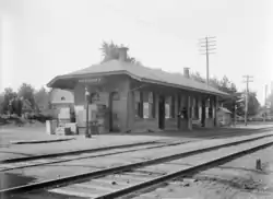 Rail service in Englewood began in 1859 when the region was still known as the English Neighborhood.[9] By 1887 Erie Railroad's Northern Branch had three stops in the city: the southernmost at Nordhoff (#1919) (later Sheffield Avenue), the central depot at Englewood (#1921), and the northernmost at Highwood (#1923) (later Hudson Avenue).[10][11][12][13]