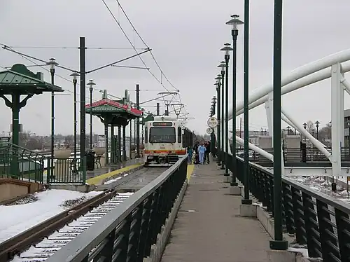 Englewood station is a RTD light rail station in Englewood, Colorado, United States. Operating as part of the D Line, the station was opened on July 14, 2000, and is operated by the Regional Transportation District.[4][5] It serves the Englewood City Center, site of the former Cinderella City Mall.[6]
